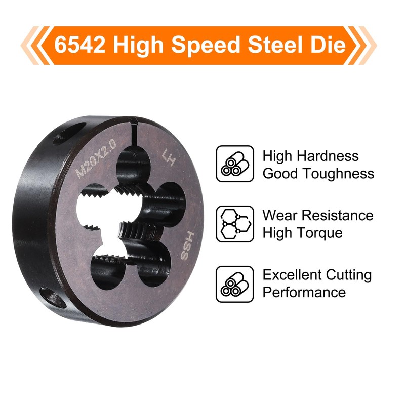 - Material - Metric dies are made of 6542 (M2) high-speed steel with high hardness and toughness, ensuring rigidity and stability during processing. They are wear-resistant, have high torque, and have excellent cutting performance, making them very suitable for repair and maintenance work.