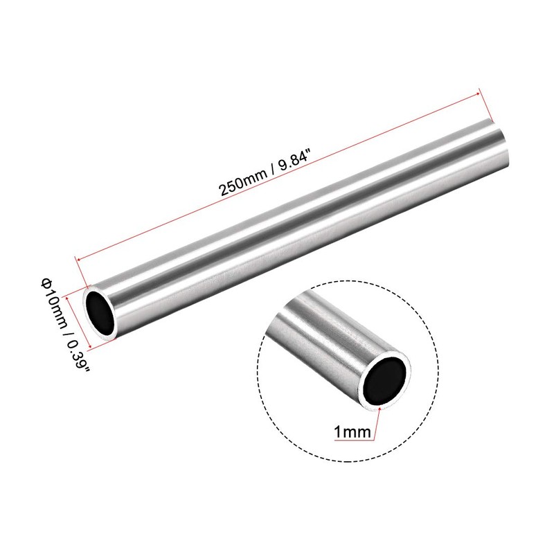 sourcing map Round Tube Straight Pipe 10 mm Outer Diameter 1 mm Wall Thickness 250 mm Length Seamless 304 Stainless Steel Pack of 2