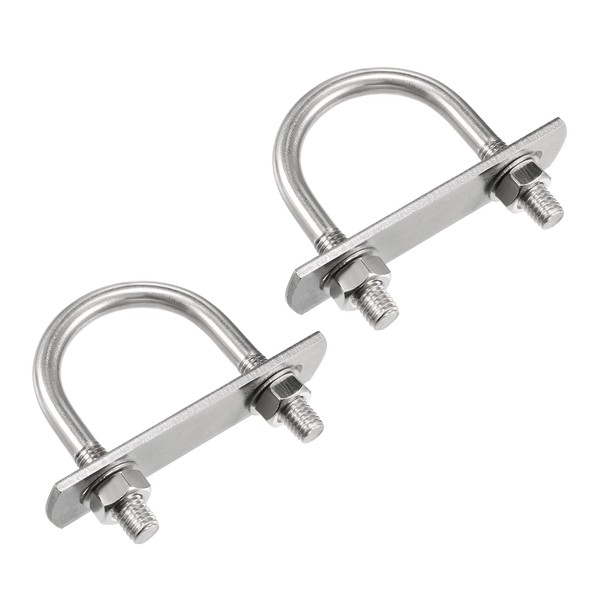 sourcing map Round U-Bolt 1.57"(40mm) Inner Width 65mm Length Steel M8 with Nuts, Plate, Washers 2 Set