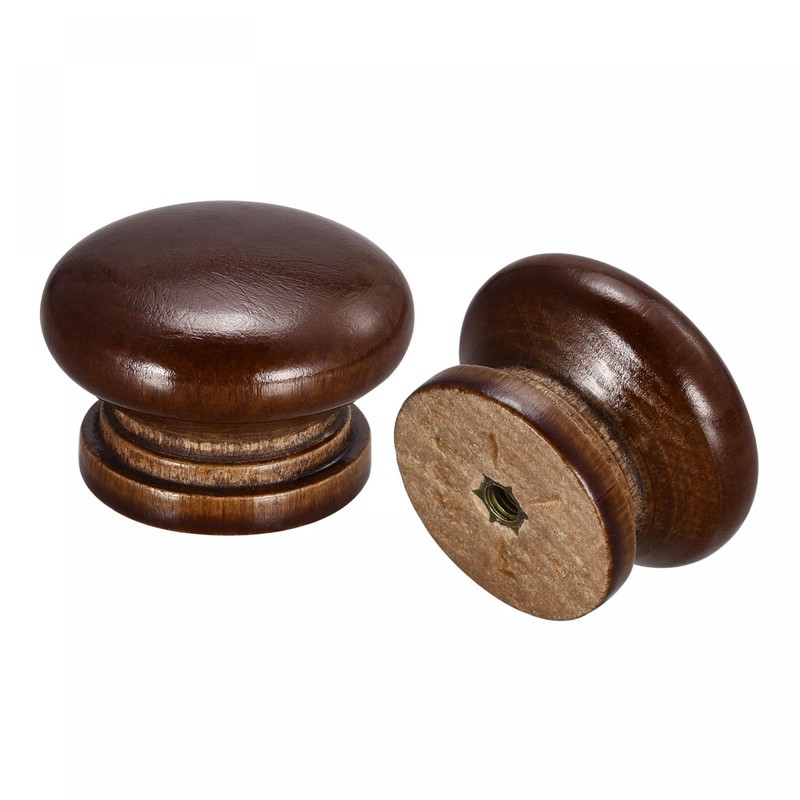 sourcing map Round Wood Knobs, 8pcs 33x23mm Pull Handles for Drawer with Screws Dark Brown