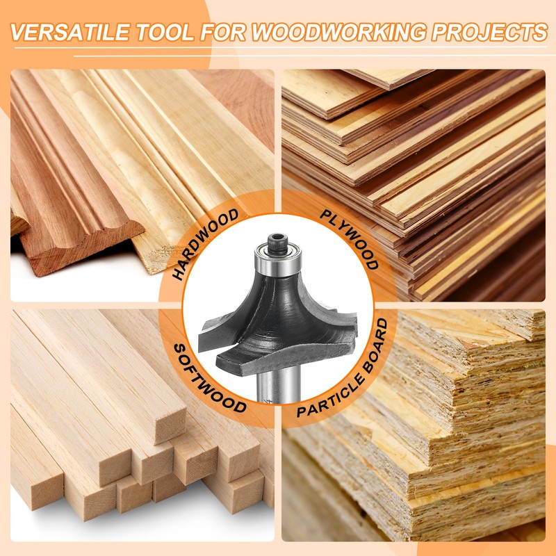 - Features - Designed to create smooth, rounded edges or soften sharp corners on wood surfaces, perfect for decorative edges, molding or chamfering applications. Bearing acts as a guide to control the cutting depth and shape of the roundover profile, allowing for consistent and accurate results, and reduces friction between the router bit and the workpiece, resulting in smoother operation, better control, and less heat build-up.