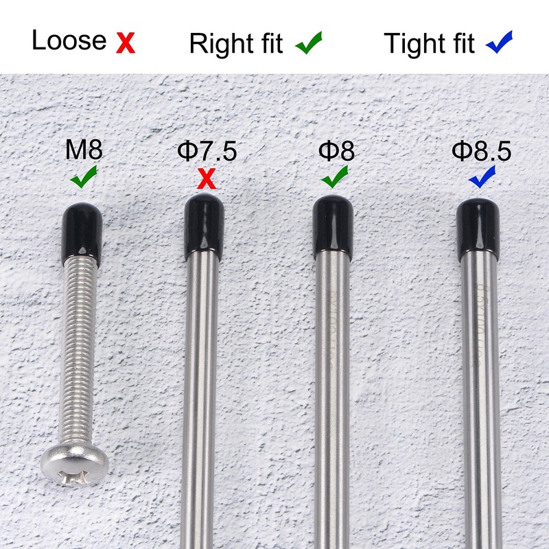 - Size selection: As the rubber material is soft and elastic, we recommend choosing a rubber end cap that is slightly smaller than the outer diameter of the product to be protected. For example: the outer diameter of your product is 9.8mm diameter, choose the rubber cover of 9.5mm!