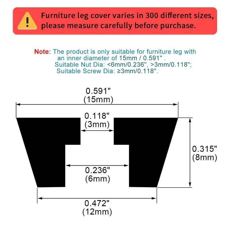 - Size – Total size: 15 x 12 x 8 mm / 0.591 x 0.472 x 0.315 inches (top D x bottom D x H), hole diameter: 3 mm / 0.118 inches, diameter of washer: 6 mm / 0.236 inches