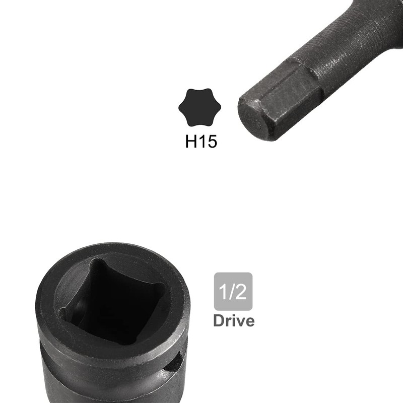 - 【Size】1/2 inch drive socket, H15 (15mm) hex bit, 3.07 inch (78mm) total length.