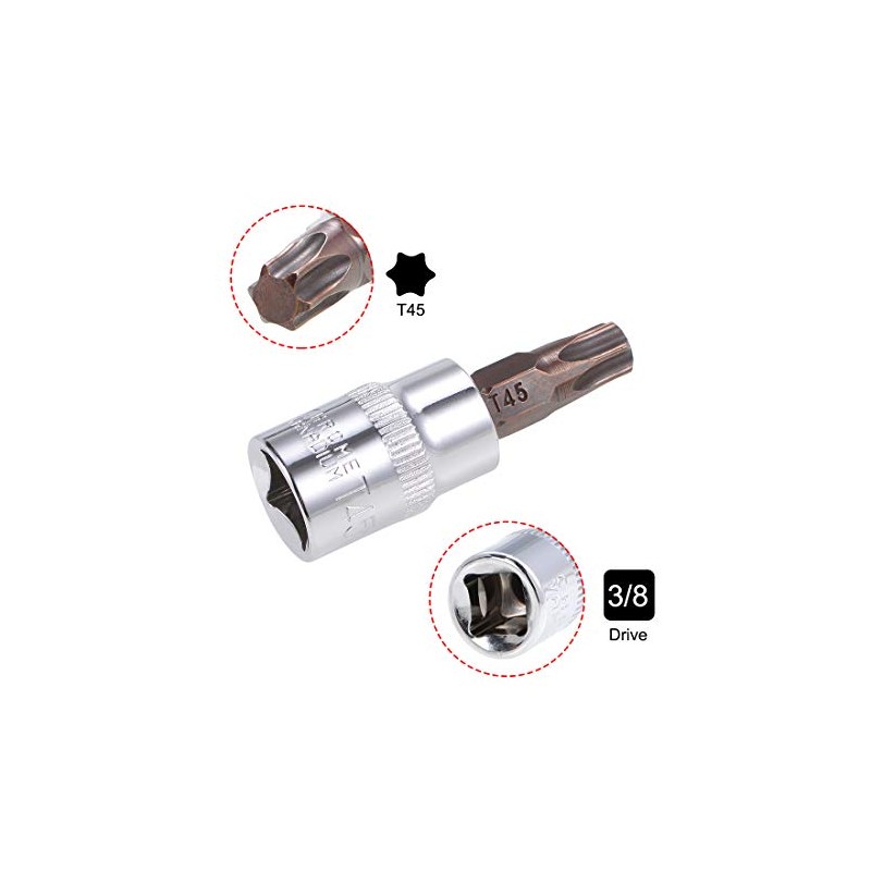 - 【Size】 3/8 inch drive socket, T45 Torx bit, 1.5 inch (38 mm) total length.