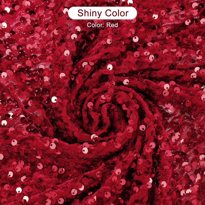 sourcing map Sequin Fabric Sold by the Metre 120 cm x 91 cm Sparkly Fabric Glitter Fabric Sequin Fabric Flannel with 5 mm Round Sequins, Red