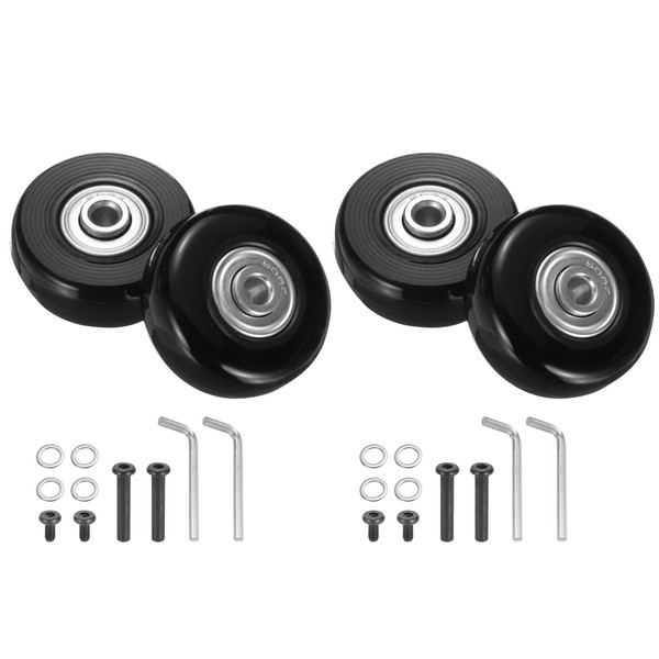 sourcing map Set of 2 Luggage Wheels Replacement 45 x 18 mm/1.8" x 0.7" Rubber Swivel Caster Bearing Wheels Repair Kits for Suitcase Inline Outdoor Skate,Black