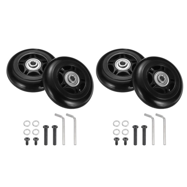 sourcing map Set of 2 Luggage Wheels Replacement 72 x 24 mm/2.8" x 0.9" Rubber Swivel Caster Bearing Wheels Repair Kits for Suitcase Inline Outdoor Skate,Black