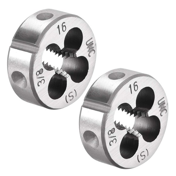 sourcing map Set of 2 round die machines, right-hand thread die, alloy tool steel, 3/8 inch - 16 UNC