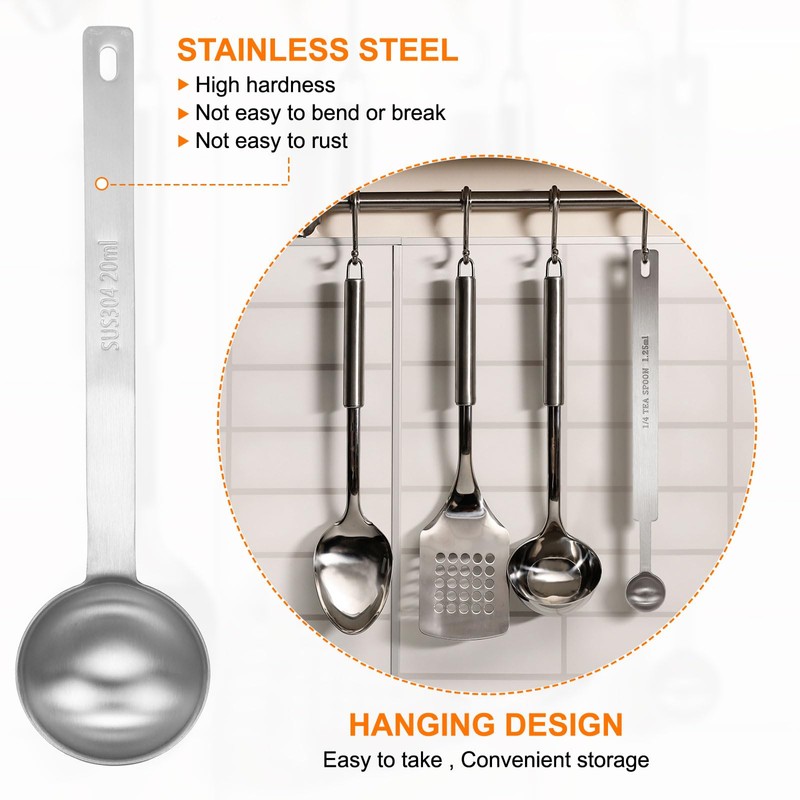 - Material - This measuring spoon is made of 304 stainless steel, which has stronger corrosion resistance and higher hardness, will not fade or rub, the surface and edge are smoother, and will not bend, break and rust, making your cooking safe.