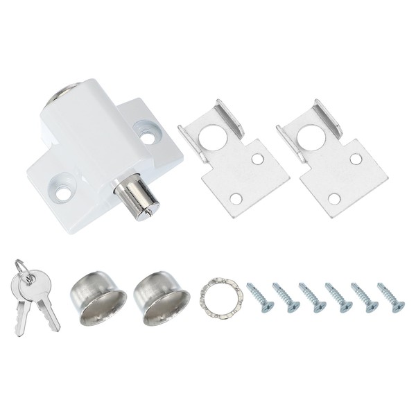 sourcing map Sliding Window Locks Push-in Sliding Window Security Lock with Keys, Sliding Door Keyed Locks for Up and Down Window, Horizontal Sliding Window Doors, White 1 Set