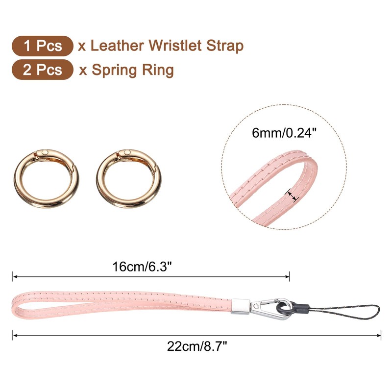 - Package Includes: 1 pcs pink leather wristlet strap and 2 pcs key rings. The strap's total length is 22cm/8.7 inch, the loop length is 16 cm/6.3 inch, and the strap width is 6mm/0.24 inch.