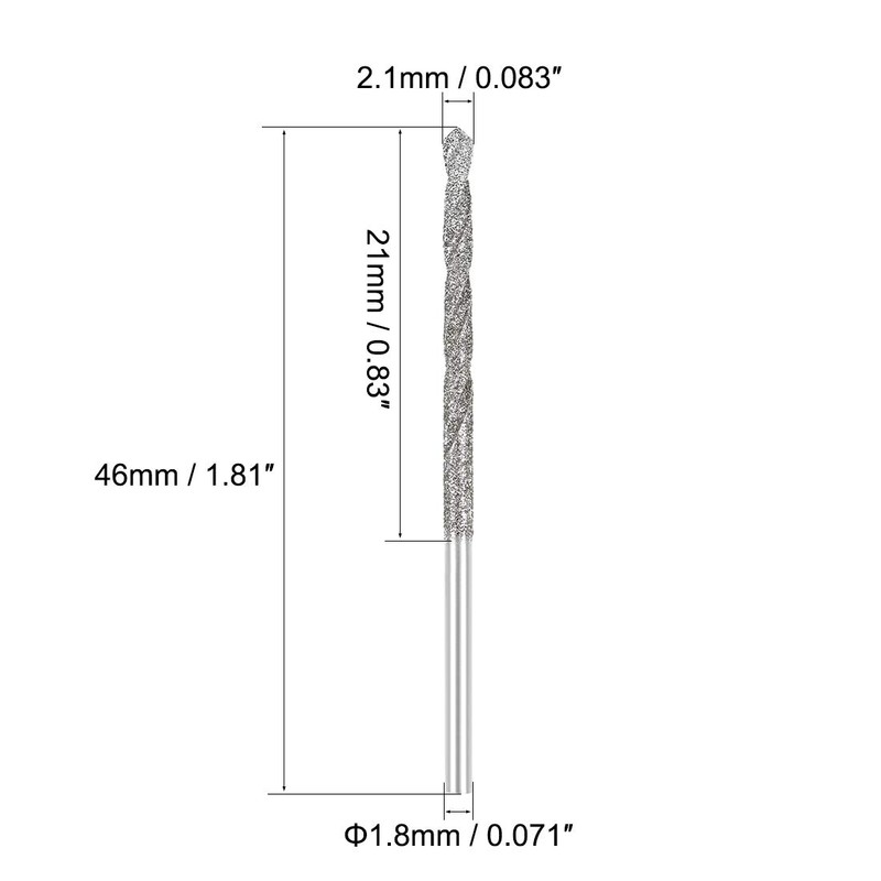 - Size: 2.1 mm diameter, 21 mm length twist drill with 1.8 mm shaft.