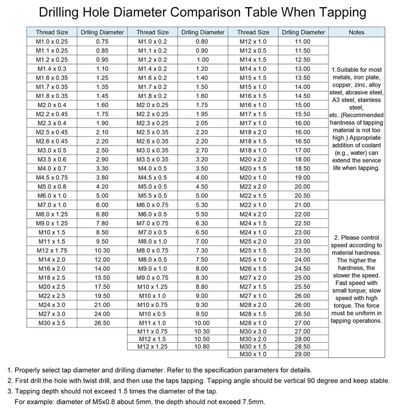- Warm Tips: Machine taps are suggested to be used with tap chucks with overload protection. It is not recommended for hand use and electric drill tapping. Micro taps (such as M1-M3.5) are mainly used for clocks, watches, low-hardness woods, and soft metals.