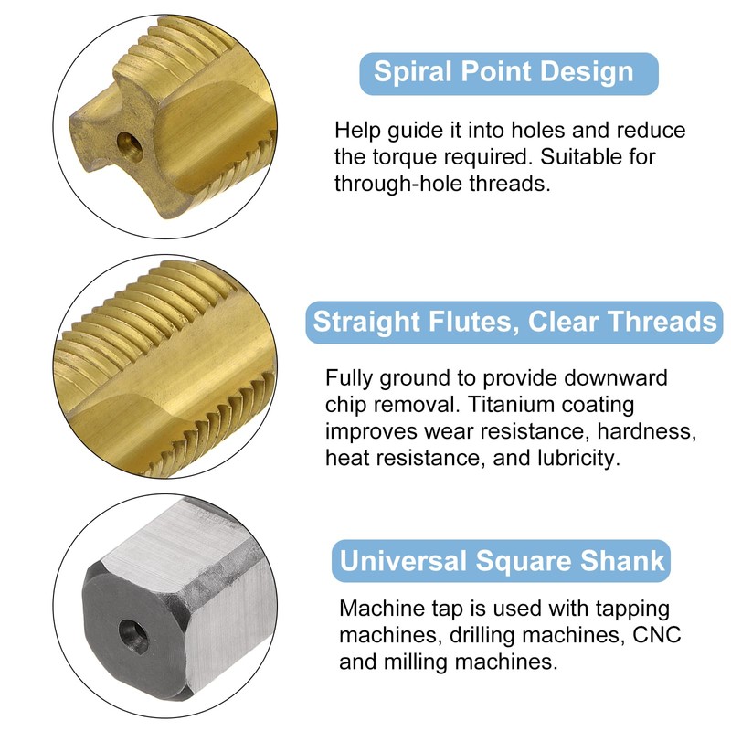 - How to Use: Suitable for drill presses, tapping machines, CNC and milling machines. Used with tapping oil to get higher quality threads and more durable taps. The point of the tap helps guide it into the hole and reduces the torque required to turn it.