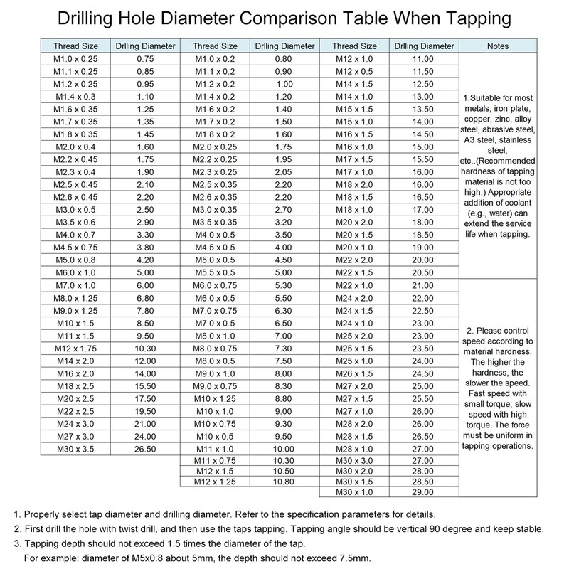 - Warm Tips: Machine taps are suggested to be used with tap chucks with overload protection. It is not recommended for hand use and electric drill tapping.