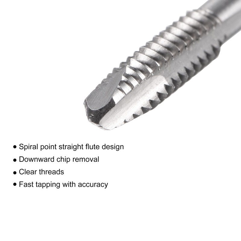 1. Spiral point taps features right hand thread cutting, clear threads, fast tapping with accuracy. Straight flutes provide downward chip removal.