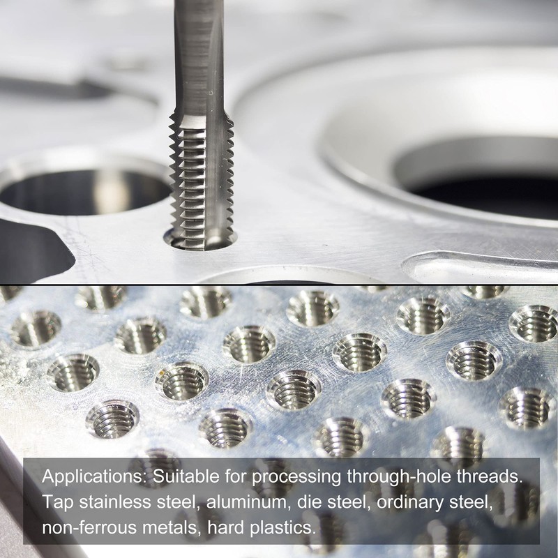 - Applications: Great for through-hole threads. Can be used for drilling and tapping stainless steel (below 30HRC), aluminum, die steel, ordinary steel, non-ferrous metals, hard plastics, etc.