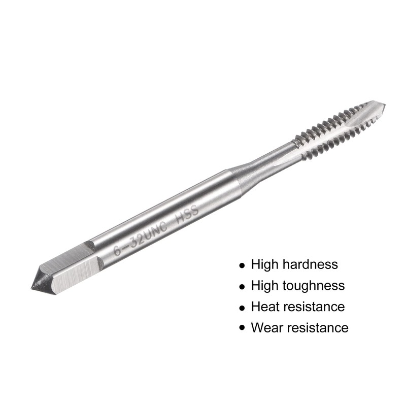 - Specifications: 6-32 UNC thread, H2 thread tolerance grade, right hand thread cutting, fast tapping with accuracy. Straight flutes spiral point taps provide downward chip removal.