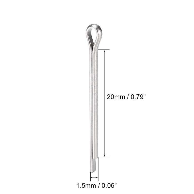 - Split split pin size: 1.5mm/0.06inch diameter and 20mm/0.78inch height.
