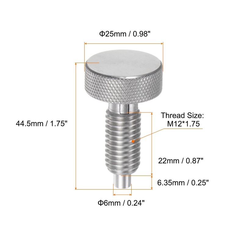 sourcing map Spring Plunger with Knurled Handle M12x1.75 Pin Dia.6mm Retractable Release Pins Stainless Steel Non-Locking Retractable Index Plunger for Industrial Equipment Location Pin