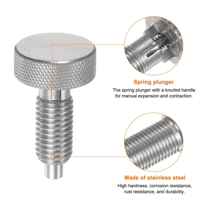 - Feature - The spring plunger with a knurled handle for manual expansion and contraction. And equipped with nuts to lock in various mechanical equipment.