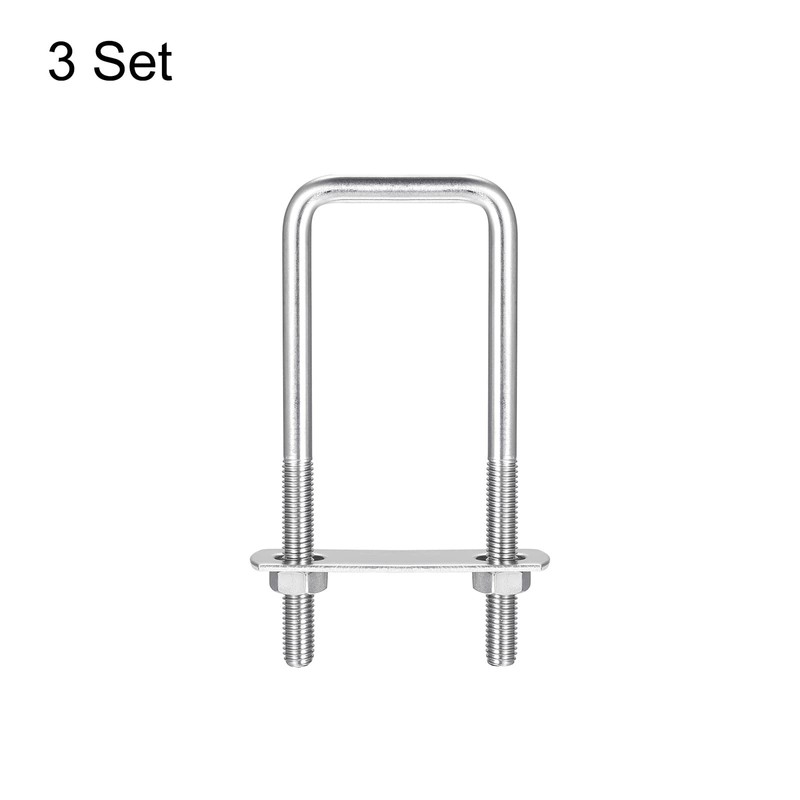 sourcing map Square U-Bolts, 3 Sets 42mm(1.65") Inner Width 120mm Length M8 304 Stainless Steel U Clamp Bolt with Nuts and Plates, for Boat Trailer