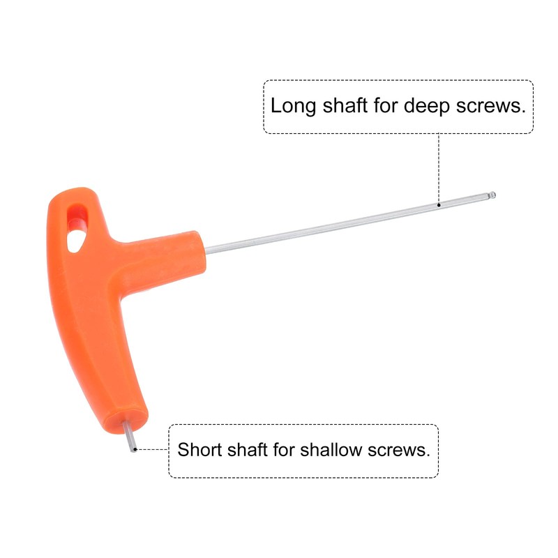- Features - The wrench adopts a double-head design, with a long shaft for deep screws and a short shaft for shallow screws. The T-handle design increases torque strength, provides greater turning force and is easy to turn.