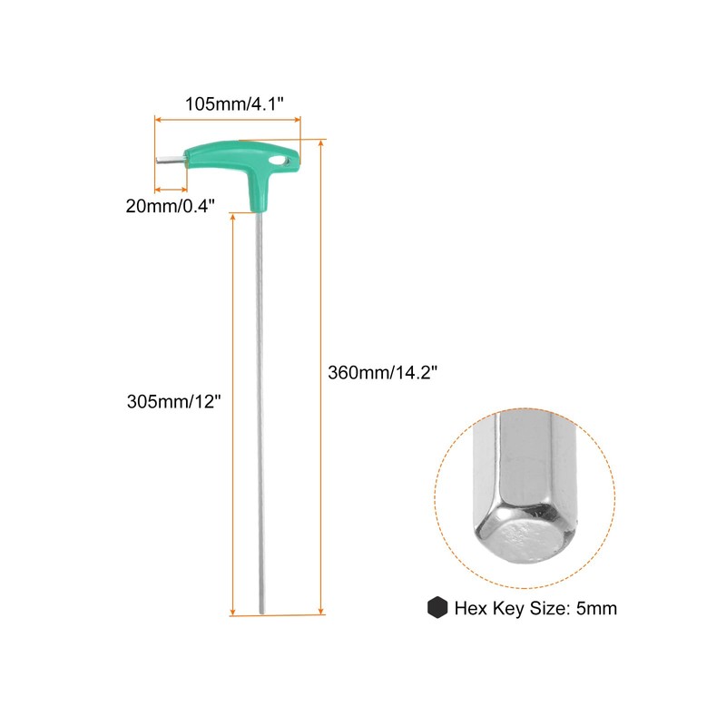 sourcing map T-Handle Hex Key Wrench 12" Long Arm 5mm Metric Carbon Steel T-Key Inner Hexagon Wrenches Spanner Repair Tool for Automotive Household Maintenance