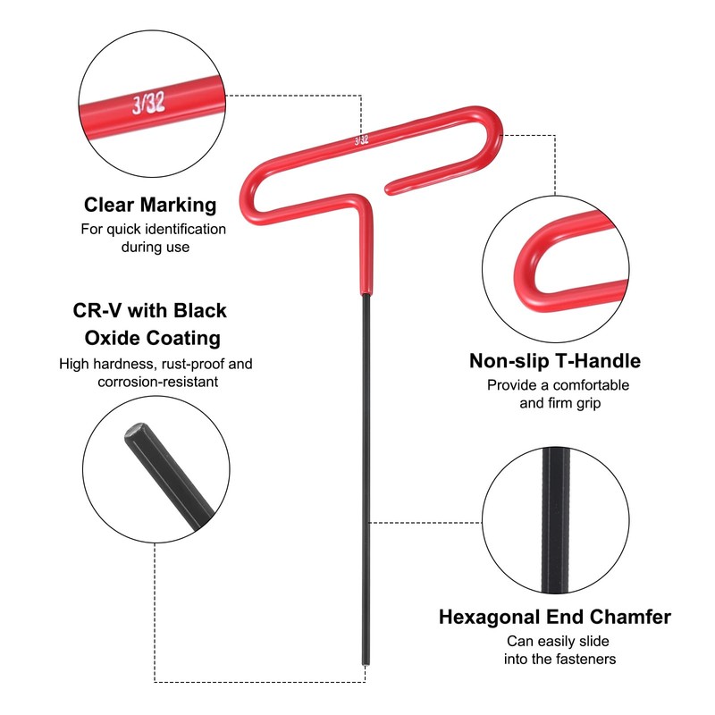 sourcing map T Handle Hex Key Wrench 3/32" SAE Long T-Key Hexagon Wrenches Spanner Repair Tool with Cushion Grip