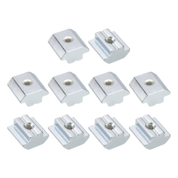 sourcing map t Nuts, 12pcs - Galvanized Carbon Steel t Slot Bolts, 4545 Series M5 Hammer Head Fastener, Sliding t Nuts for Aluminum Extrusion Profile (Silver)