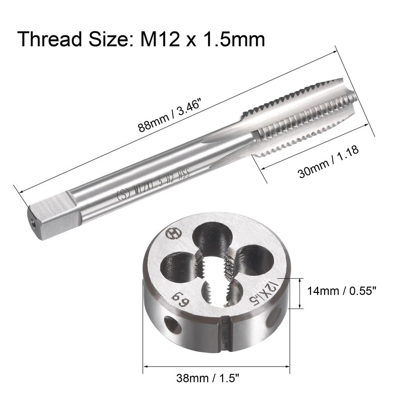 - Compatibility M12 x 1.5mm metric tap and die set are suitable for making or repairing male and female threads, good for general purpose applications and with clear threads to meet the processing requirements.