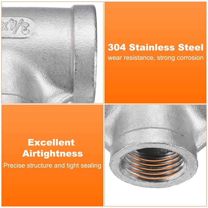 sourcing map Tee Pipe Fitting (1/2" x 3/4" x 3/4") NPT Female 304 Stainless Steel t Shaped Reducer 3 Way T-Connector for Industrial Connection Water Air Gas Oil Fuel