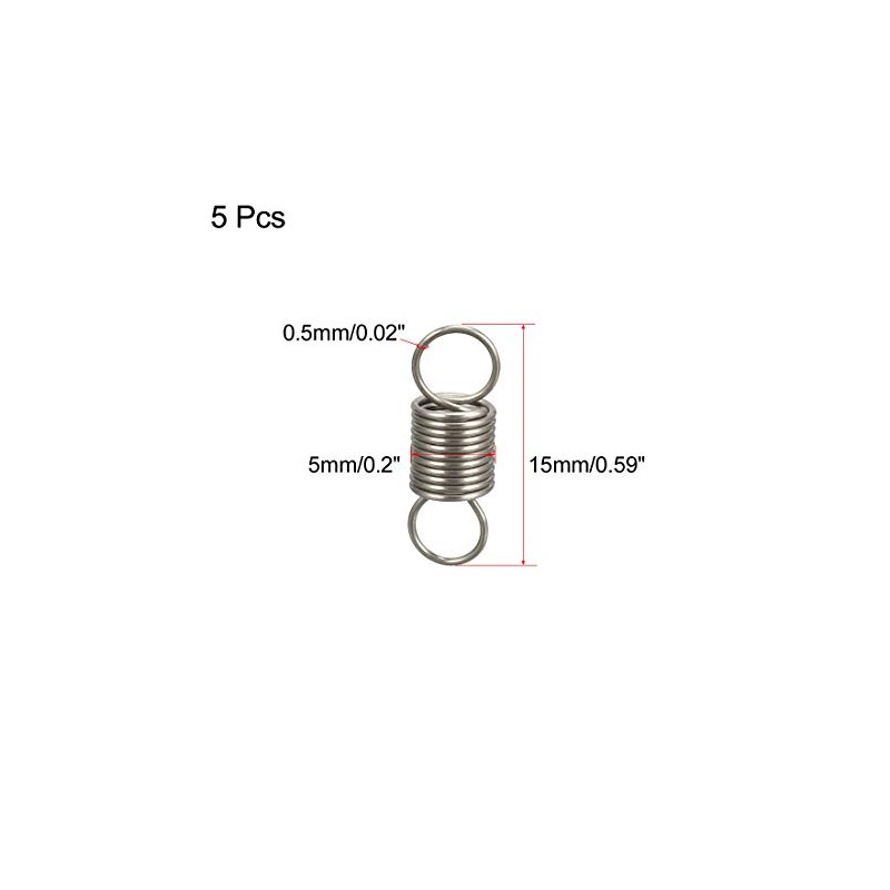 sourcing map Tension Spring Wire Diameter 0.02 Inch AD 0.2 Inch Free Length 0.59 Inch Stainless Steel Small Double Hook Tension Spring Pack of 5