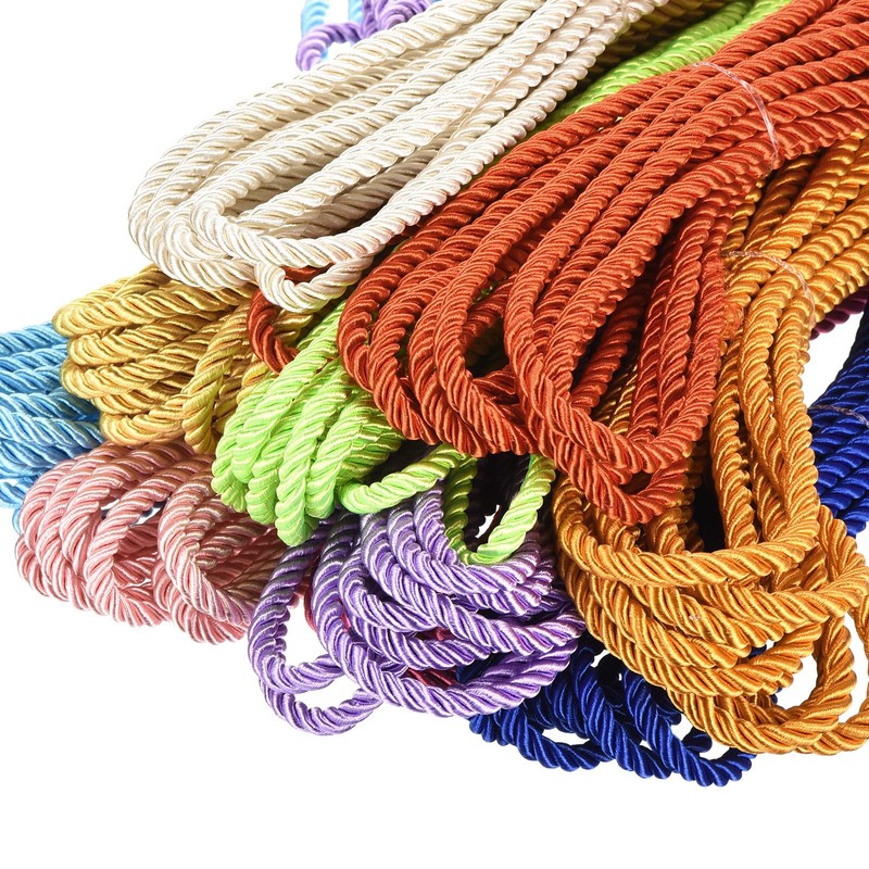 - 3-Ply polyester braided rope, strong wear resistance, durable, not easy to wear, especially suitable for holiday gift bag decoration, home decoration, clothing decoration, etc. Twisted cord rope, easy to disassemble and replace, easy to use, soft and comfortable, providing convenience for daily life; Twisted cord string, is in rich colors, can meet different decoration styles and needs