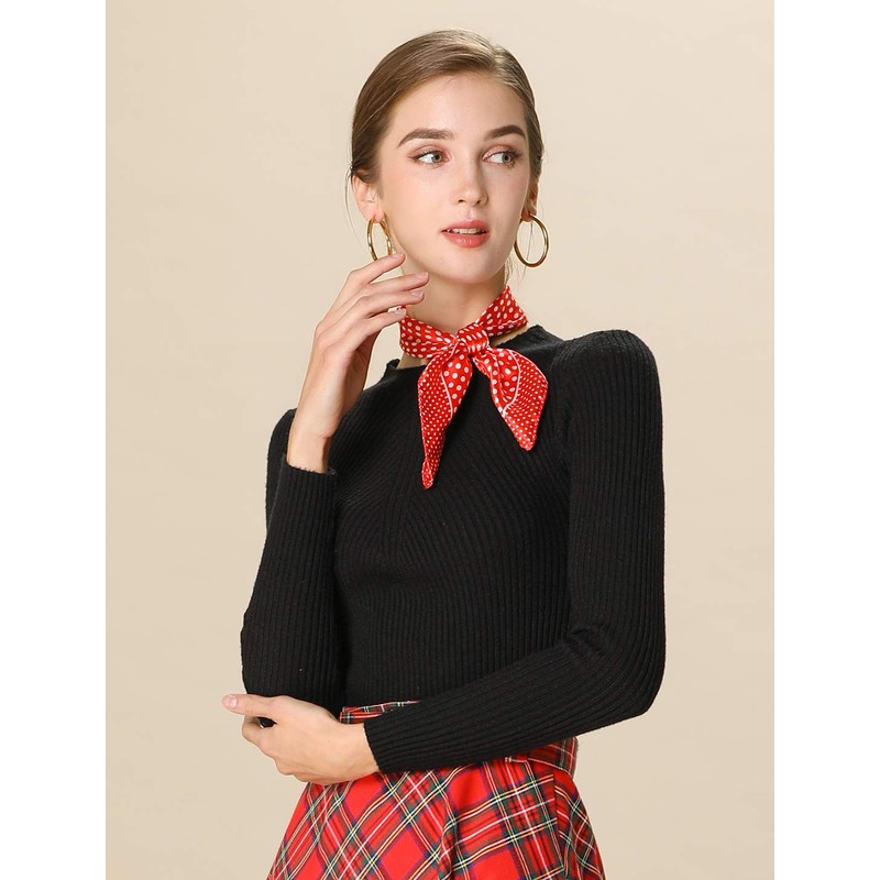 sourcing map Women's Floral Leopard Polka Dots Striped Print Square Scarves Neck Scarf Shawl Red-Dots 19.68 x 19.68inches