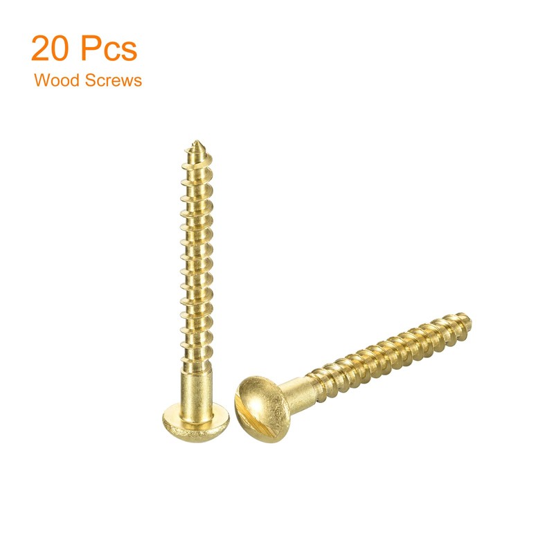 sourcing map Wood Screws M5 x 40mm Slotted Round Head Brass Self-Tapping Screw WoodWorking Screw 20 Pcs
