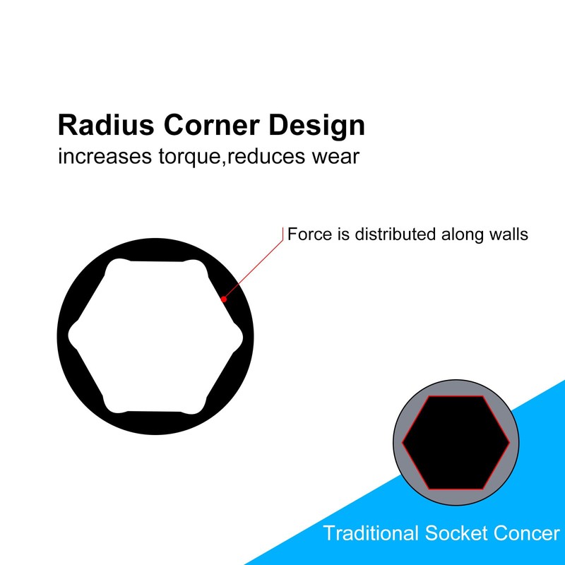 - [6-Point Socket] - Can fit tightly to the hexagon of the fastener head so that the maximum torque can be applied without slipping.