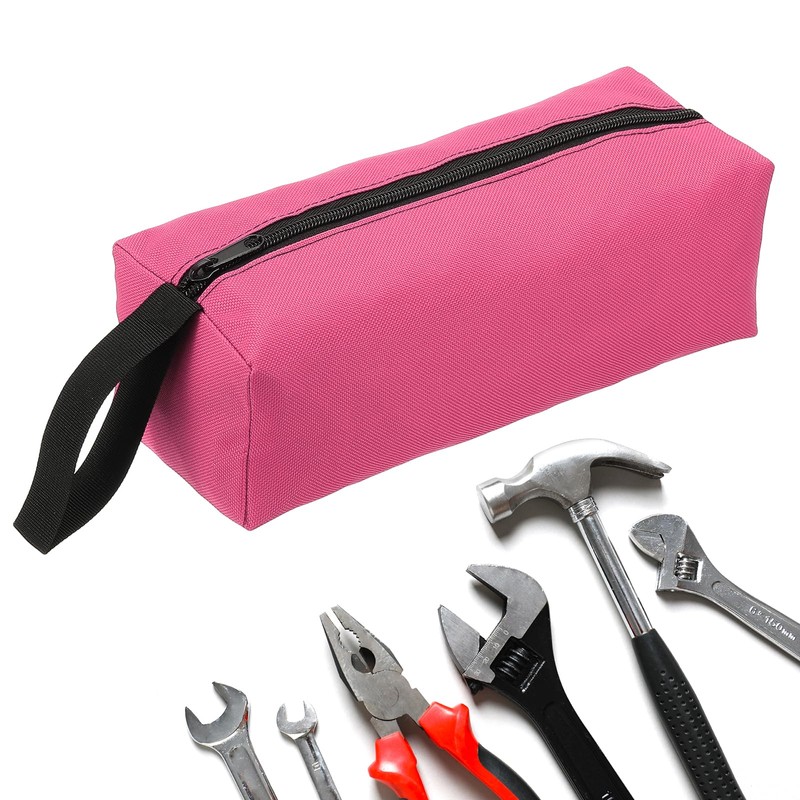 sourcing map Zipper Utility Tool Bag 10.2x4x3.3 Inch Multi-Purpose Oxford Cloth Tote Tool Pouch Small Organize Bags for Storage Various Electrician Tools Screwdrivers, Pink