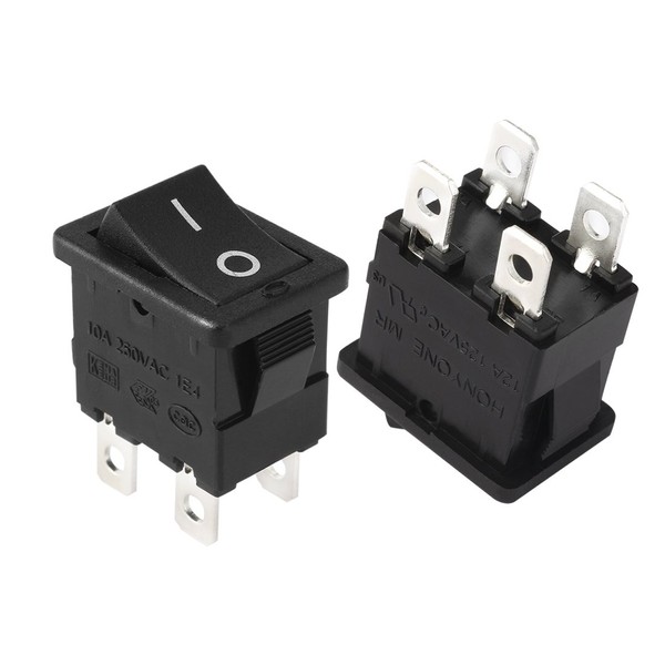 Sourcingmap 5Pcs AC 12A/125V 10A/250V DPST 4P 2 Position I/O On Off Button Boat Rocker Switch