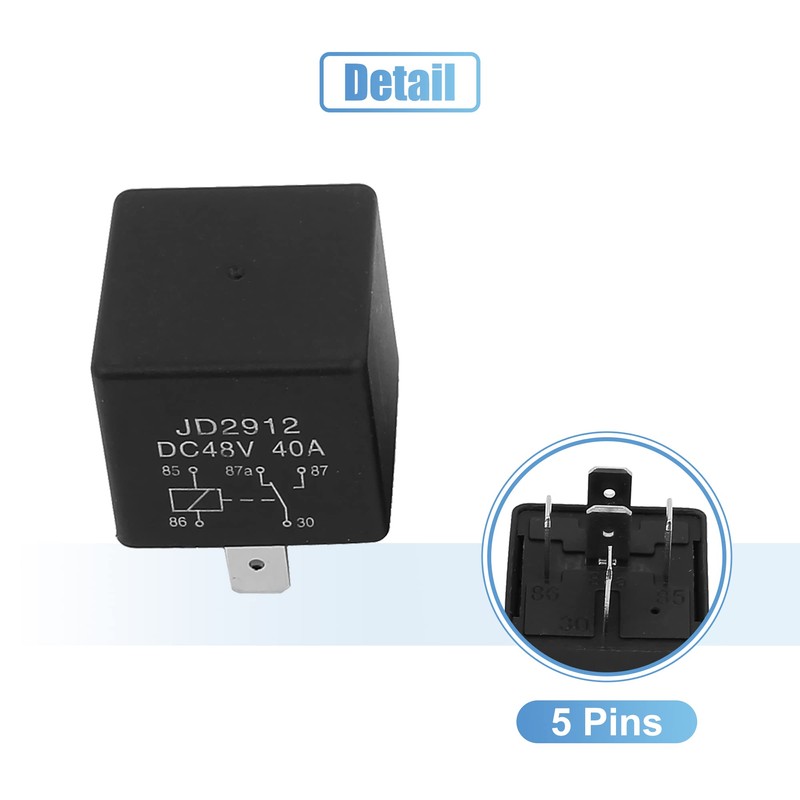 sourcingmap 5pcs JD2912 5 Pin DC 48V 40A Universal Car Fuse Relay Switch Power