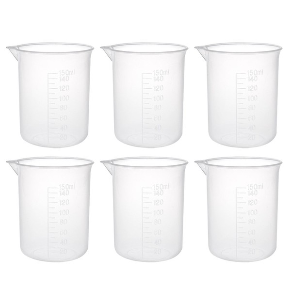 sourcingmap Measuring Cup 150ml PP Plastic Graduated Beaker Transparent for Lab Kitchen liquids 6pcs