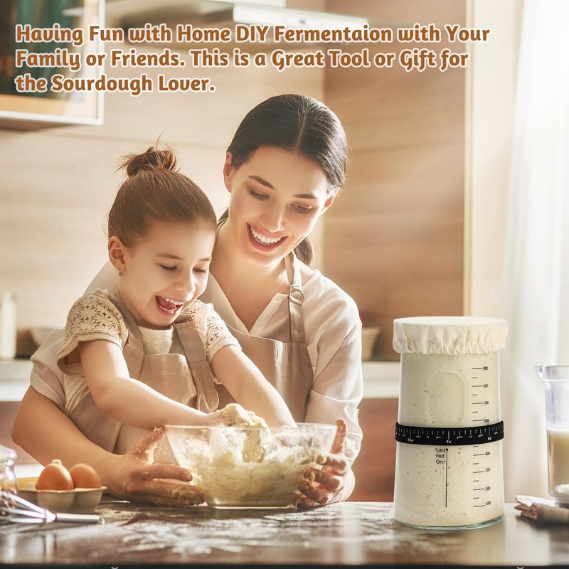 • Double Baking Bread Proofing Efficiency: Aiming to long-lasting use, Norxziore sourdough jar cover is made of high-quality cotton material, creating a small heat retention and warming environment for better fermentation. No matter you are an amateur baker at home or a professional maker, these sourdough starter jar cloth covers will save you precious time in your busy life or work. Also, an elastic band wraps around your starter jar that helps you gauge how fast the starter rises