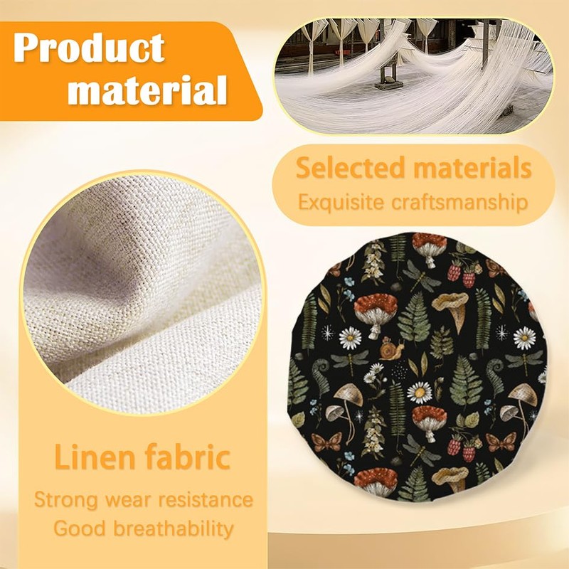 Sourdough Starter Jar Cloth Covers,Mushroom Fern Forest Plants Sewn Fabric Lids for Enhanced Fermentation Reusable Cloth Lid Top Cover Sourdough Cover for 3-4 Inch Jar Mouth