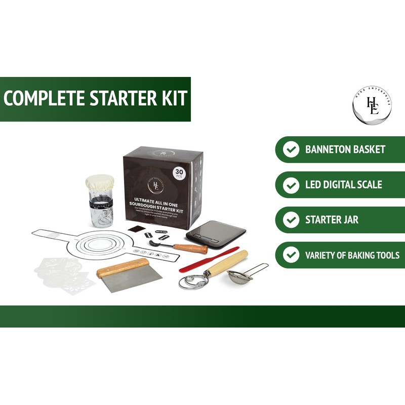• Comprehensive Sourdough Kit. Our complete kit includes: a proofing basket (10-inch round), Kitchen Scale, Starter Jar, Linen Liners, Danish whisk, Dough Scraper, Bread Lame with 5 blades, Silicone Sourdough Bread Sling, Flour Sifter, and more for easy artisan bread making.