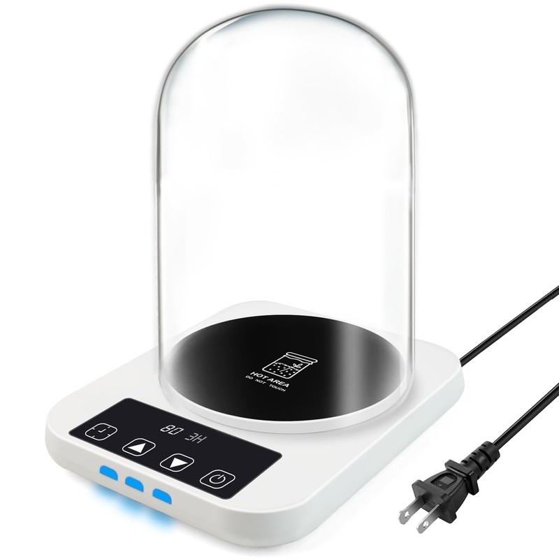 Sourdough Starter Warmer with Glass Dome, 1°F Precise Temperature Control from 70 to 100°F, 0-12H Timer Auto Warming ON/Off, Sour Dough Warmer and Glass Cover Set for Baking Fermentation