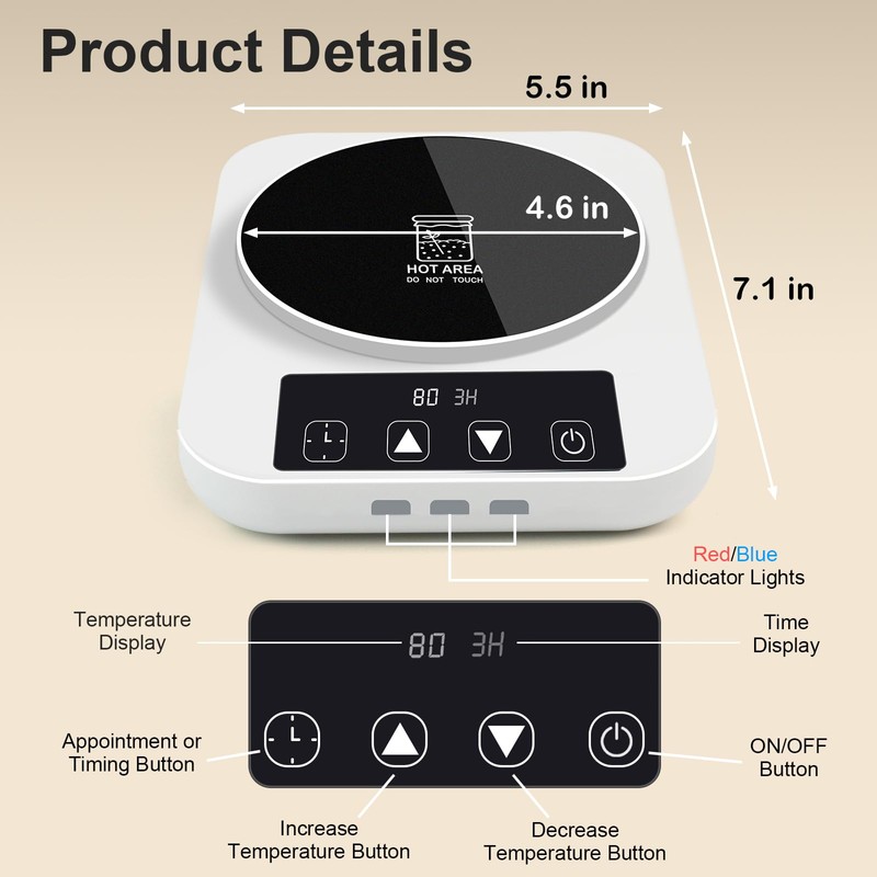 - [Easy to Use]: This compact heat warmer mat is easy to store and maintain. The included USB adapter, convenient to use anywhere. The digital temperature, the heating plate temperature and the actual temperature in the yeast jar may have an error of 3-5 degrees due to different outdoor environments. When using, it is recommended to check the temperature first to achieve the fermentation temperature you need most