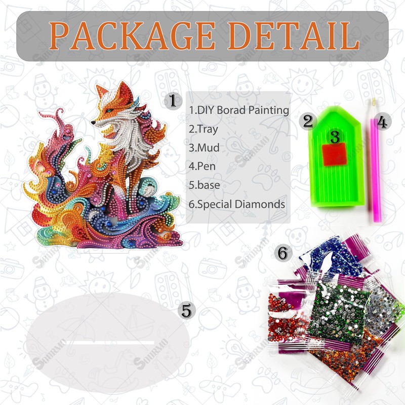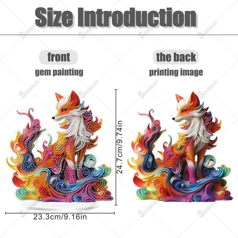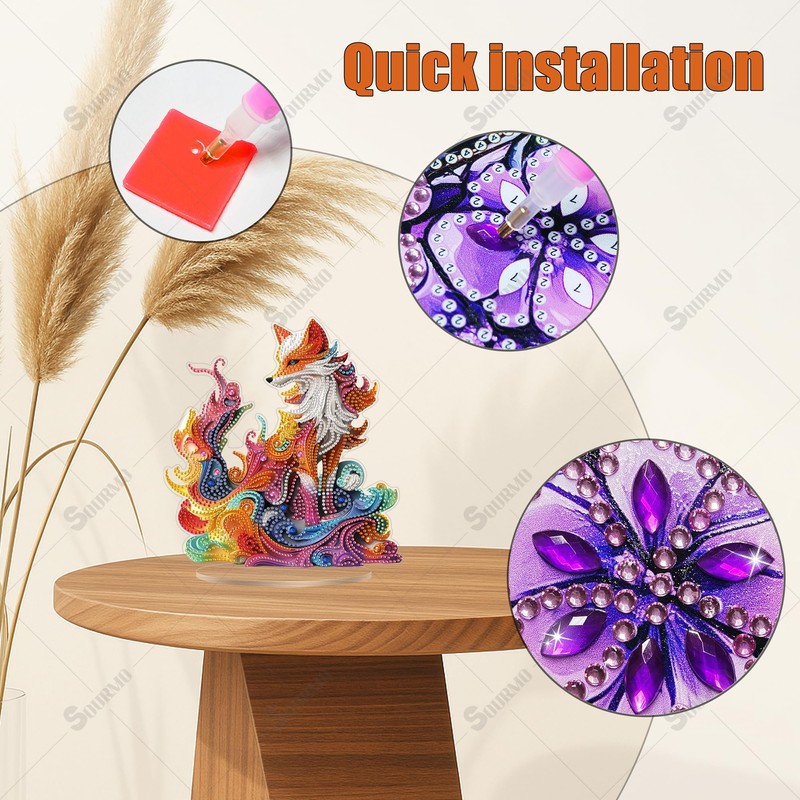 SOURMO Tabletop Diamond Art Painting Animal Kit, DIY Double Sided Acrylic Diamonds Painting Board Kit for Adults (Fox)