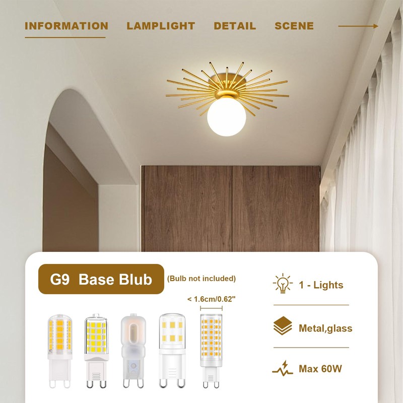 - Material: The gold Ceiling light is made of metal brushed brass lamp body, not easy to rust and fade, strong corrosion resistance, the long average service life and durable