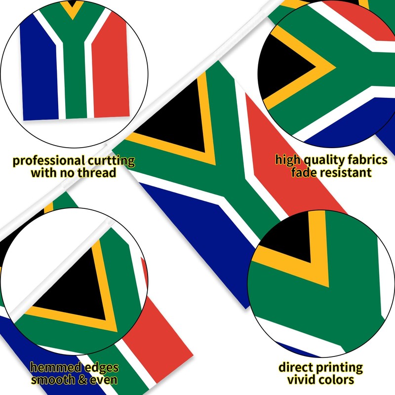 - 10M Pennant: a total of 30pcs South Africa Buntings. The length of singlel is 14.5 cm and the height is 22.5 cm, total banner length -10 meters / 32.8 feet.